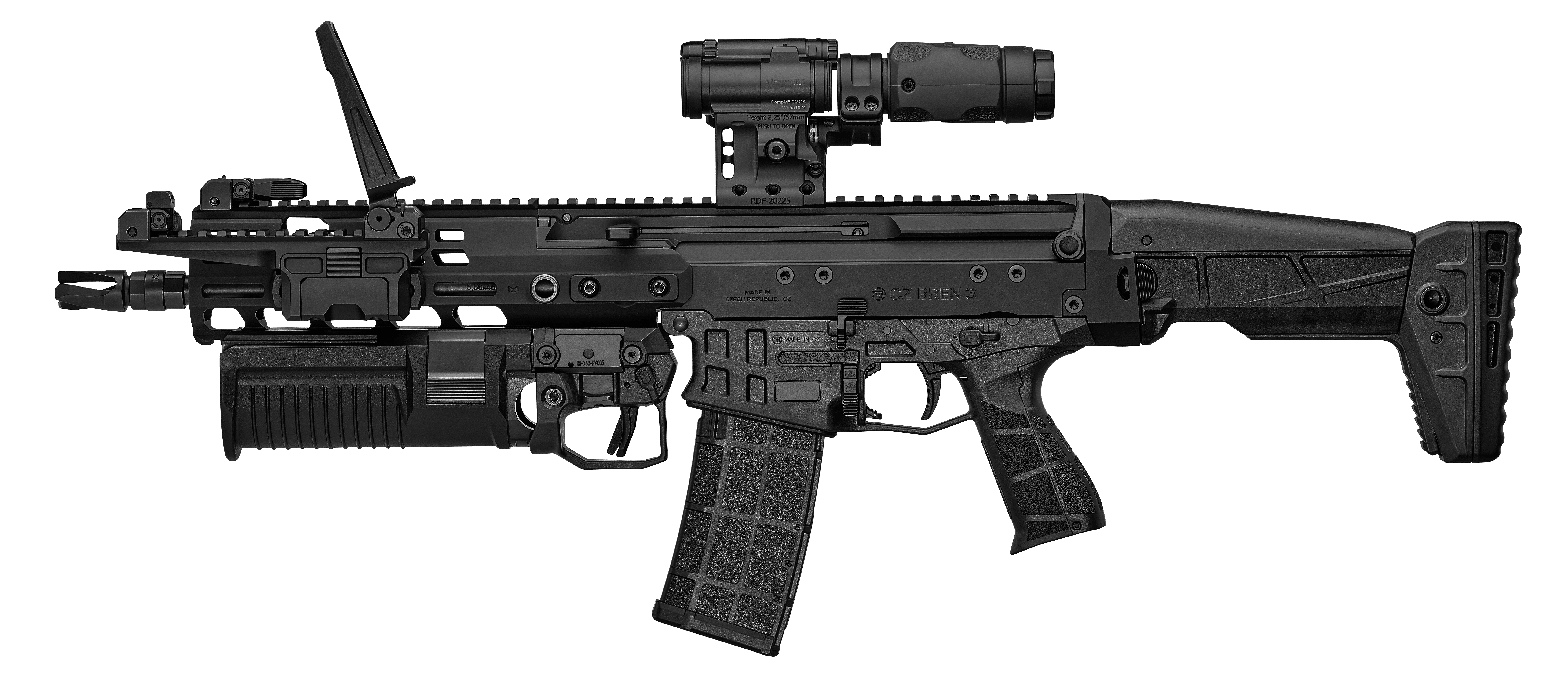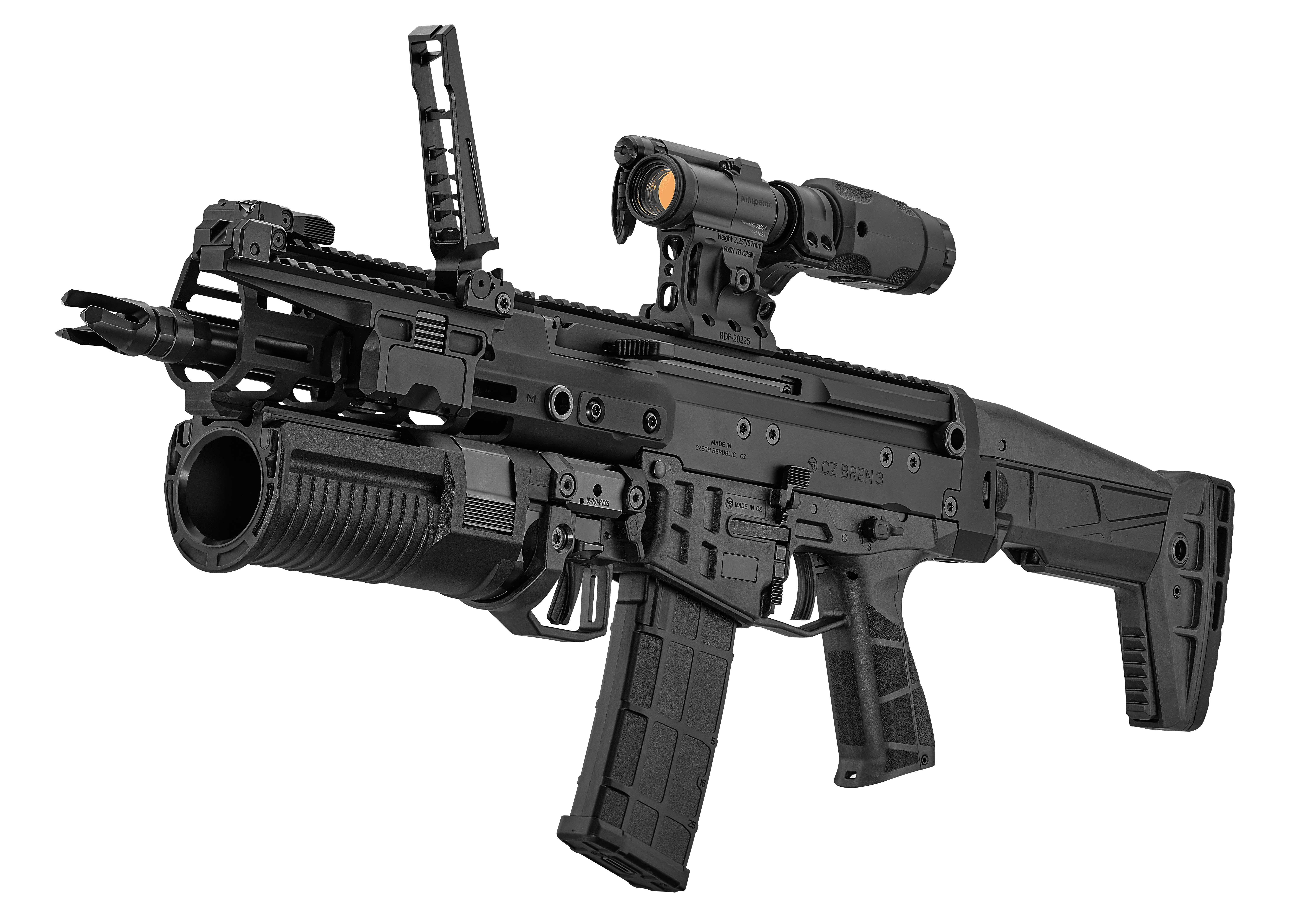 Ramenní opěra nosiče granátometu CZ GL je výsuvná do čtyř poloh. Ke střeleckému komfortu přispívá silná pryžová botka.