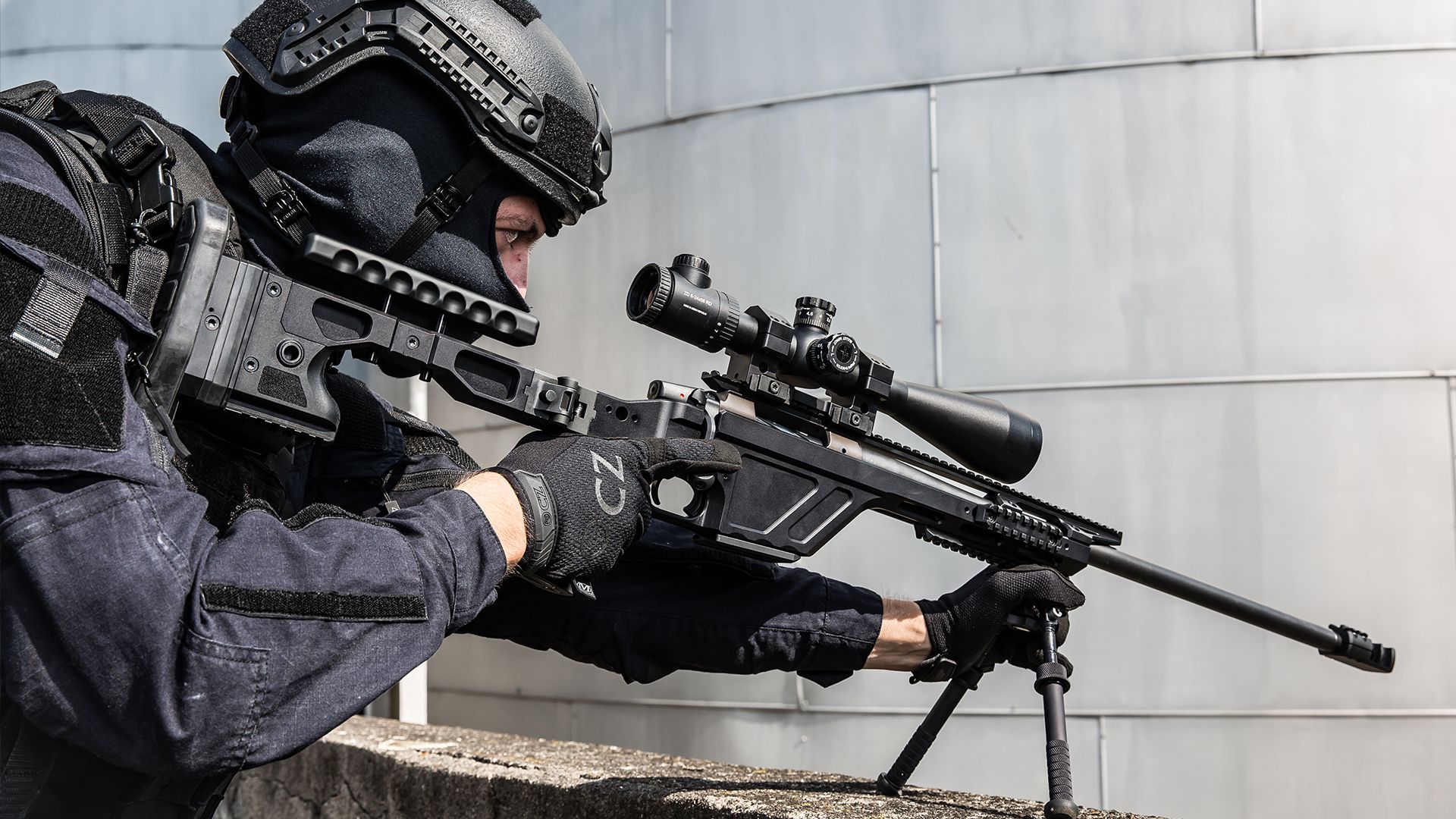 Pažba z vysoce odolné hliníkové slitiny 7075 T6 je opatřena ergonomicky přívětivou sklopnou ramenní opěrou originální konstrukce. Směr sklápění opěry je možné nastavit podle potřeb mise. Lícnice je výškově stavitelná, botku lze nastavit výškově i délkově a uživatel si může určit úhel jejího stranového vyklonění.