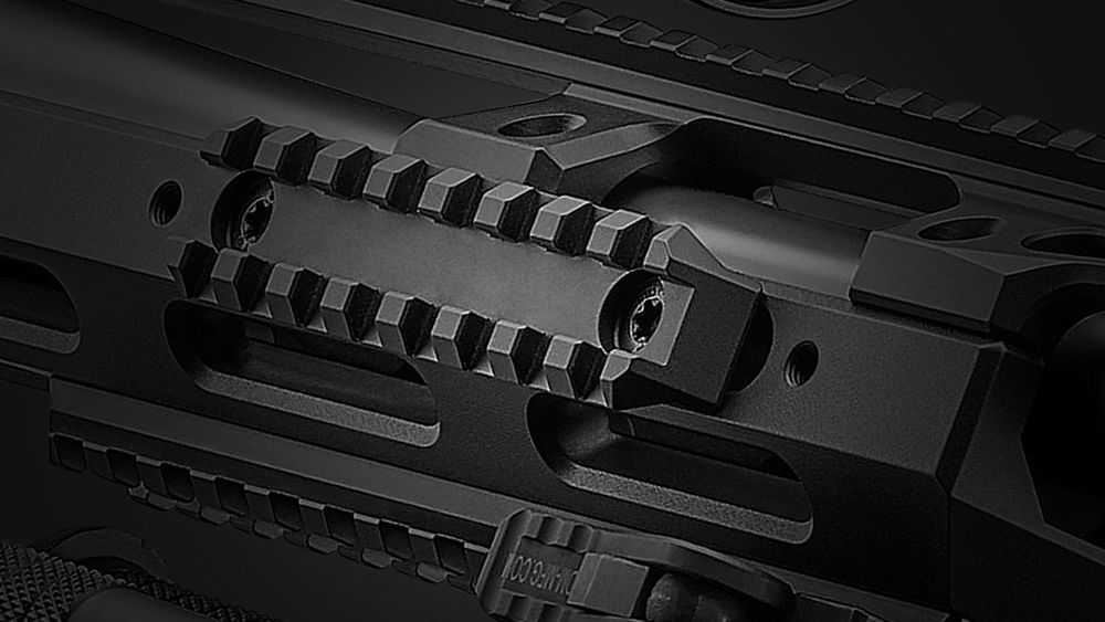 Pro rychlé a robustní upevnění montáže zaměřovacího dalekohledu slouží lišta STANAG 4694 s úhlovým náklonem 25 MOA.