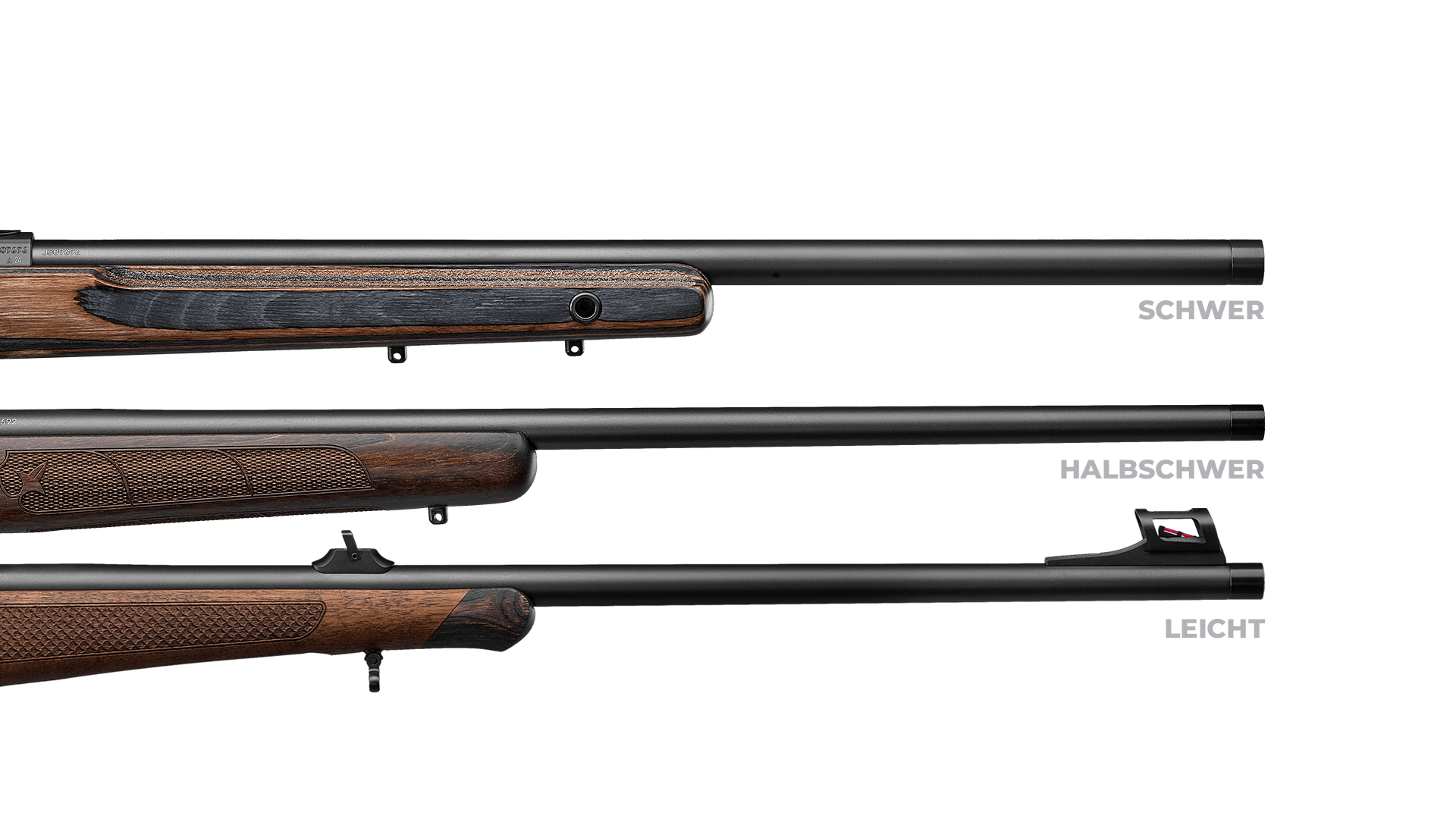 Die CZ 600+ ist mit drei verschiedenen Laufprofilen erhältlich – leicht, mittelschwer und schwer. Ein leichter Lauf für die Jagd? Wir haben ihn. Ein schwerer Lauf für das Scheibenschießen? Kein Problem. Ein vielseitiger mittelschwerer Lauf? Natürlich!