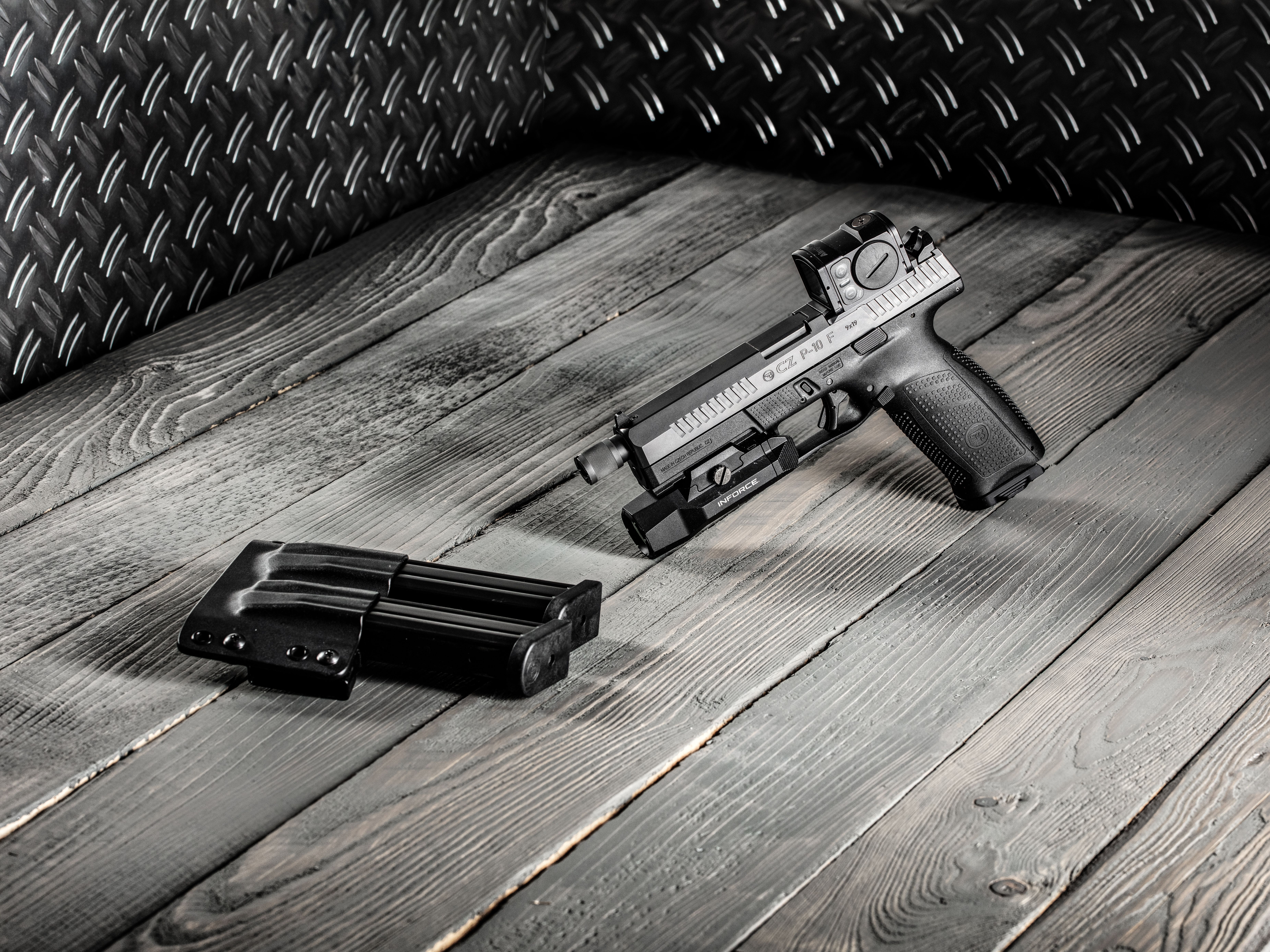 Durable, fiberglass-reinforced polymer frameThe CZ P-10 F OR SR (Optics-Ready-Suppressor-Ready) features both an innovative CZ interface for mounting a red dot sight and extended barrel with 1/2" × 28 UNEF – 3A threads for mounting a suppressor. This model allows for more flexible use and offers a higher level of shooting comfort.