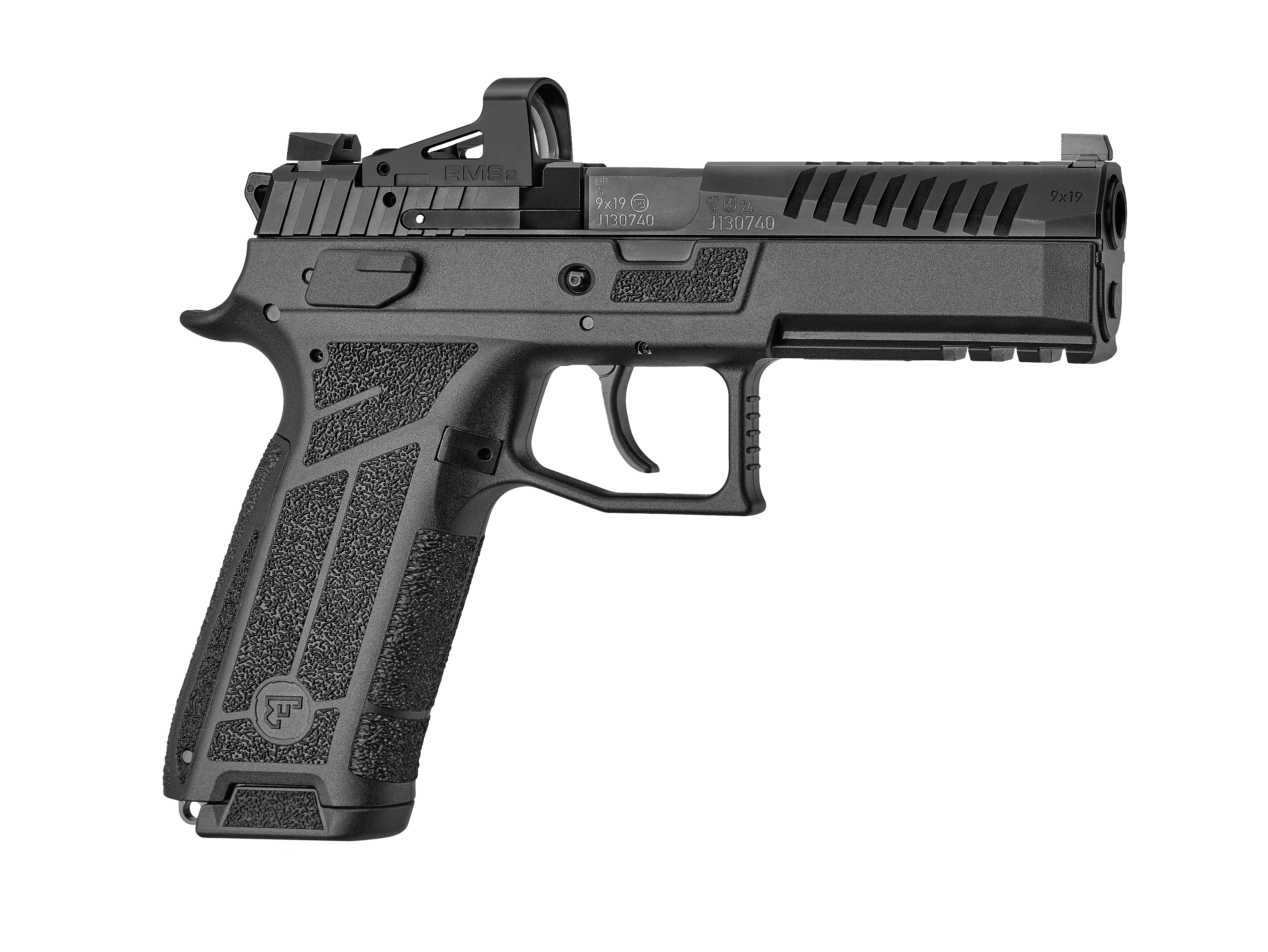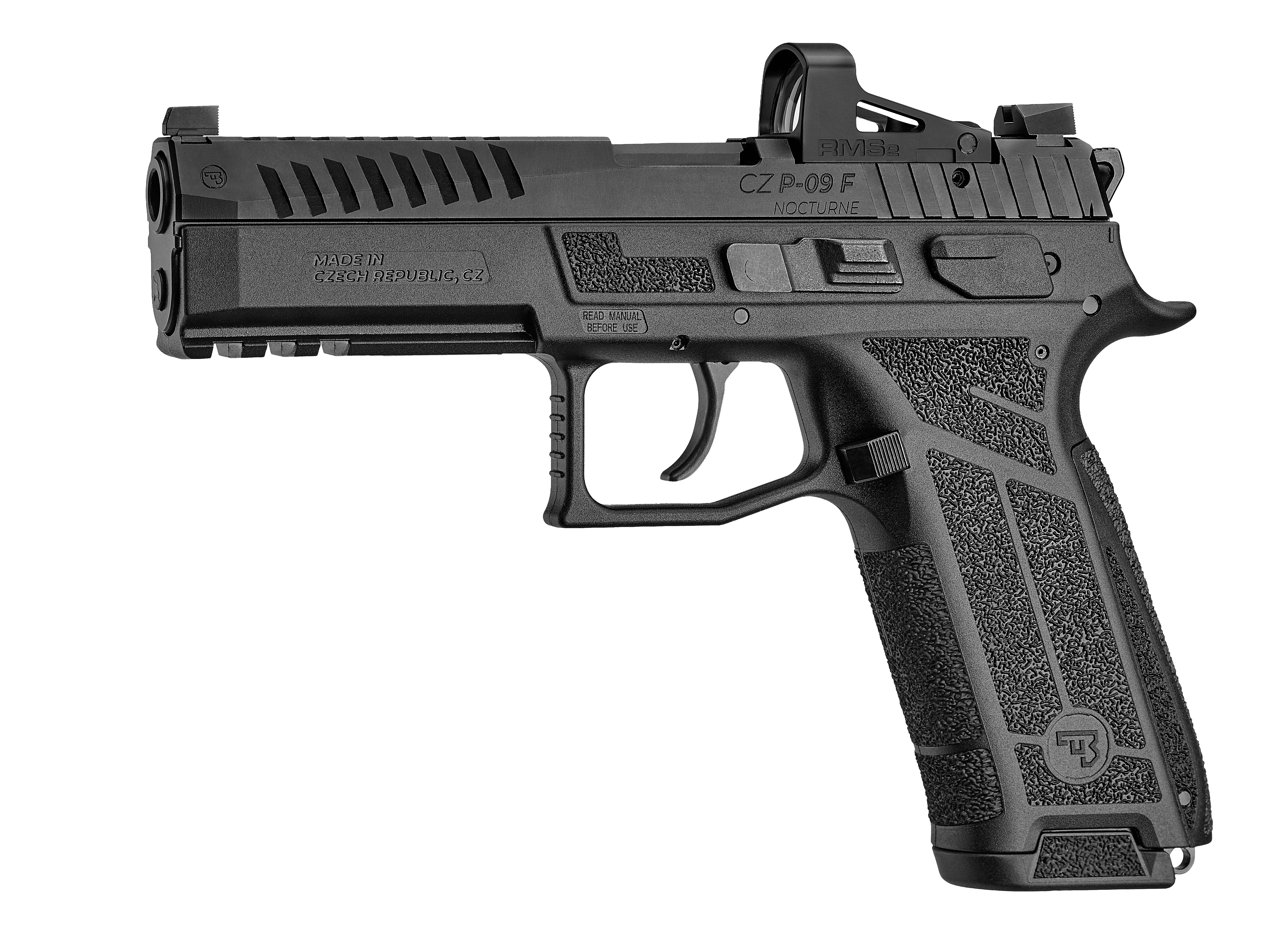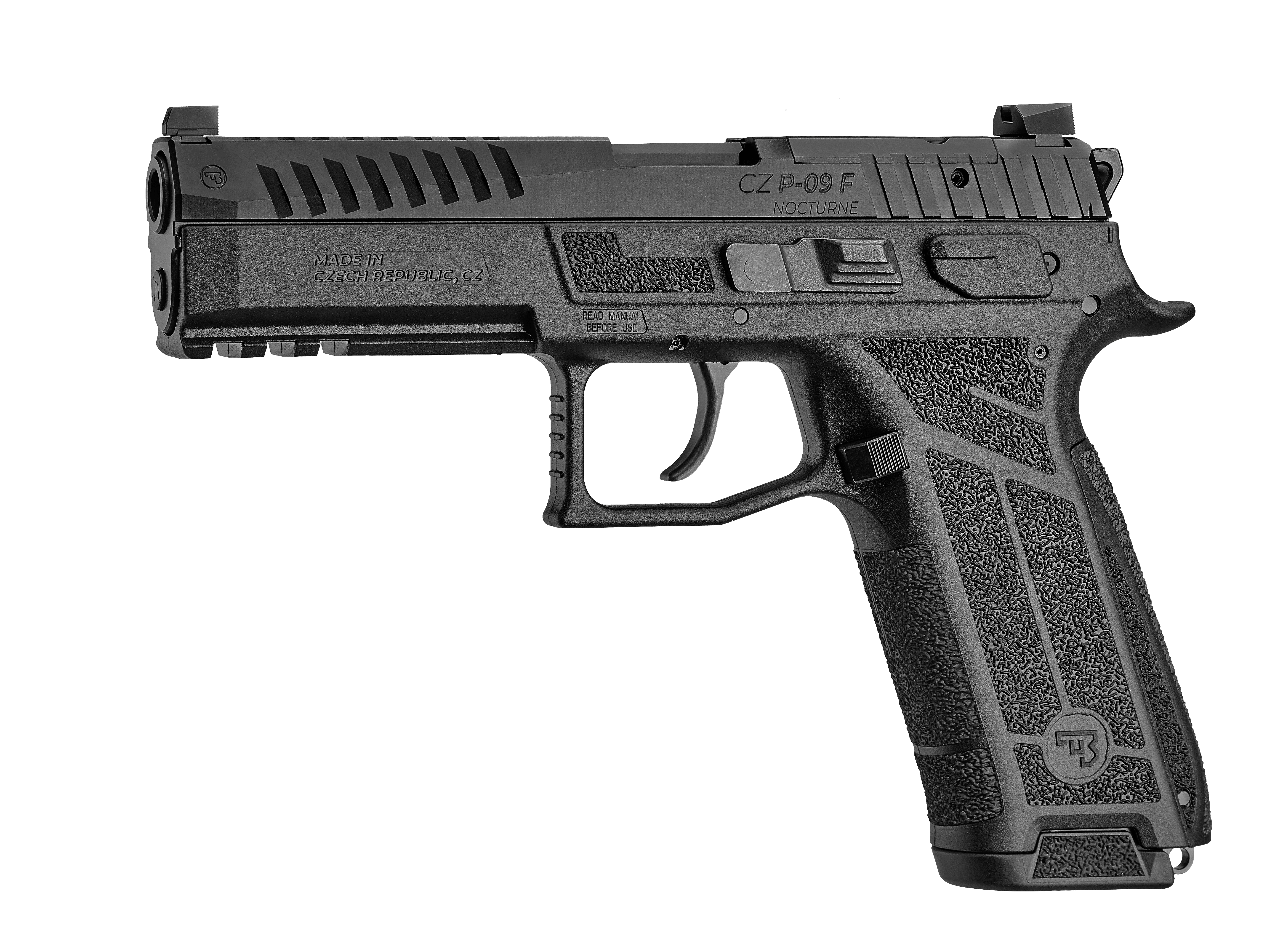 Durable, fiberglass-reinforced polymer frameThe full-size version of the CZ P-09 NOCTURNE with OMEGA SA | DA trigger mechanism features advanced ergonomics and intuitive placement of controls for maximum comfort with intuitive operation. High accuracy is ensured by its full-size, cold hammer forged barrel and luminescent or tritium sights. New texturing on the grip and other strategic areas provides high traction where you need it most.