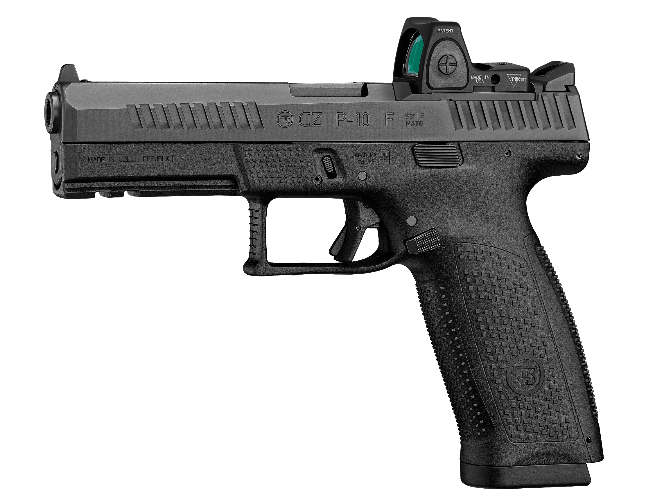 Durable, fiberglass-reinforced polymer frameThe CZ P-10 F OR (Optics-Ready) has been designed for the increasingly popular option of mounting a red dot sight quickly and easily. The innovative CZ mounting interface is known for its robustness, strength, durability, low installation height, and easy aiming with the red dot sight at short to long distances. This model also comes with high (cowitness) iron sights in case optics are damaged or fail.