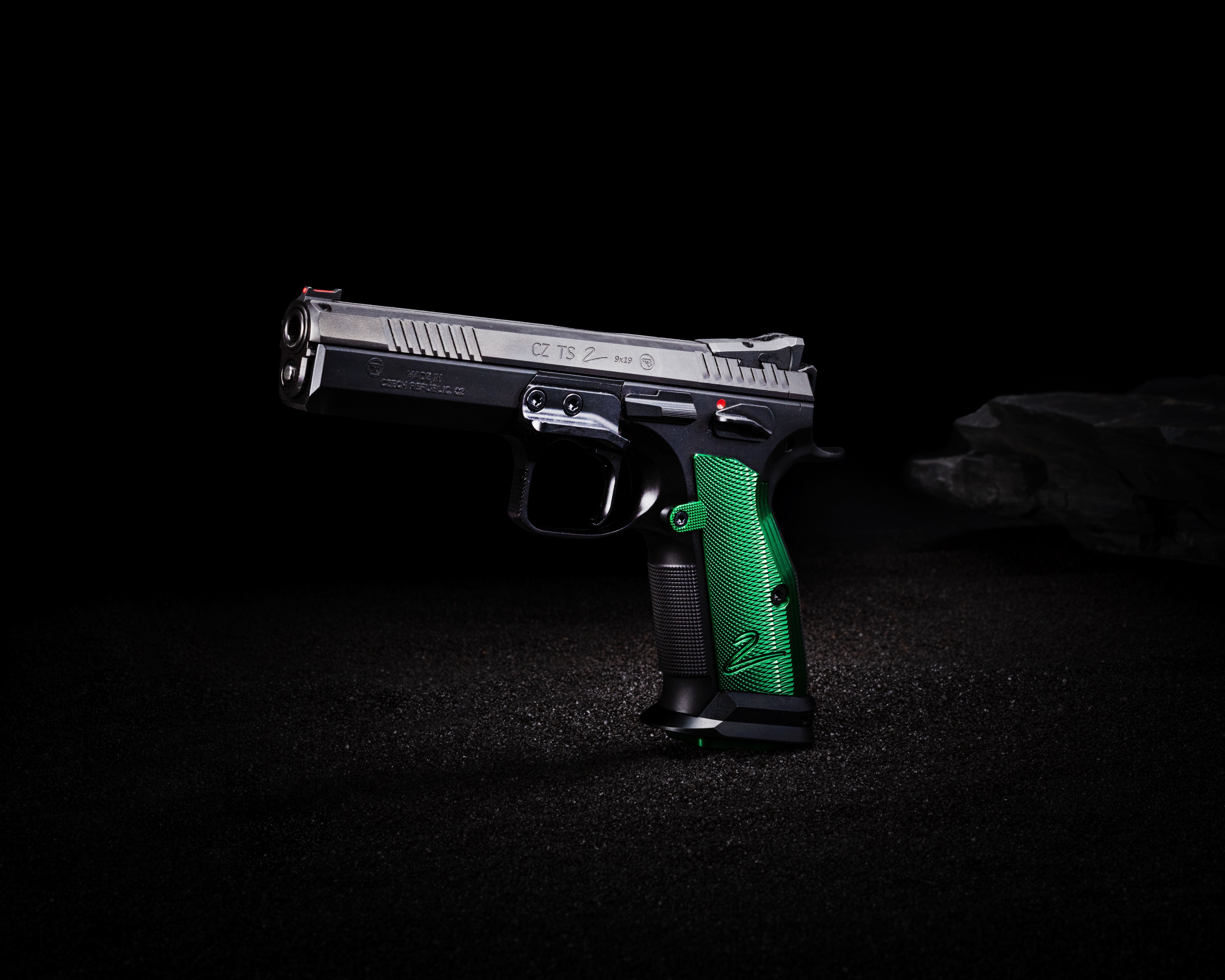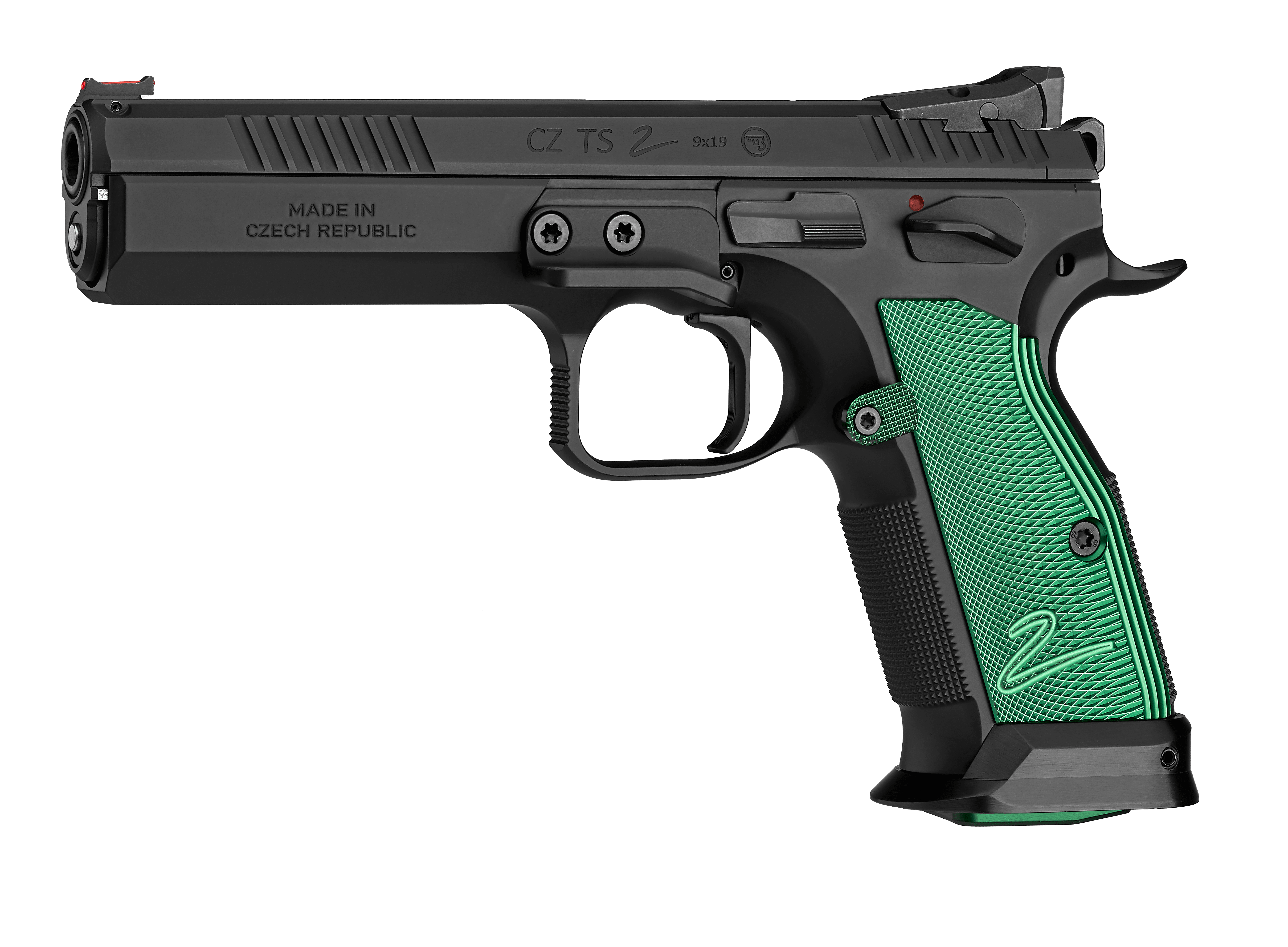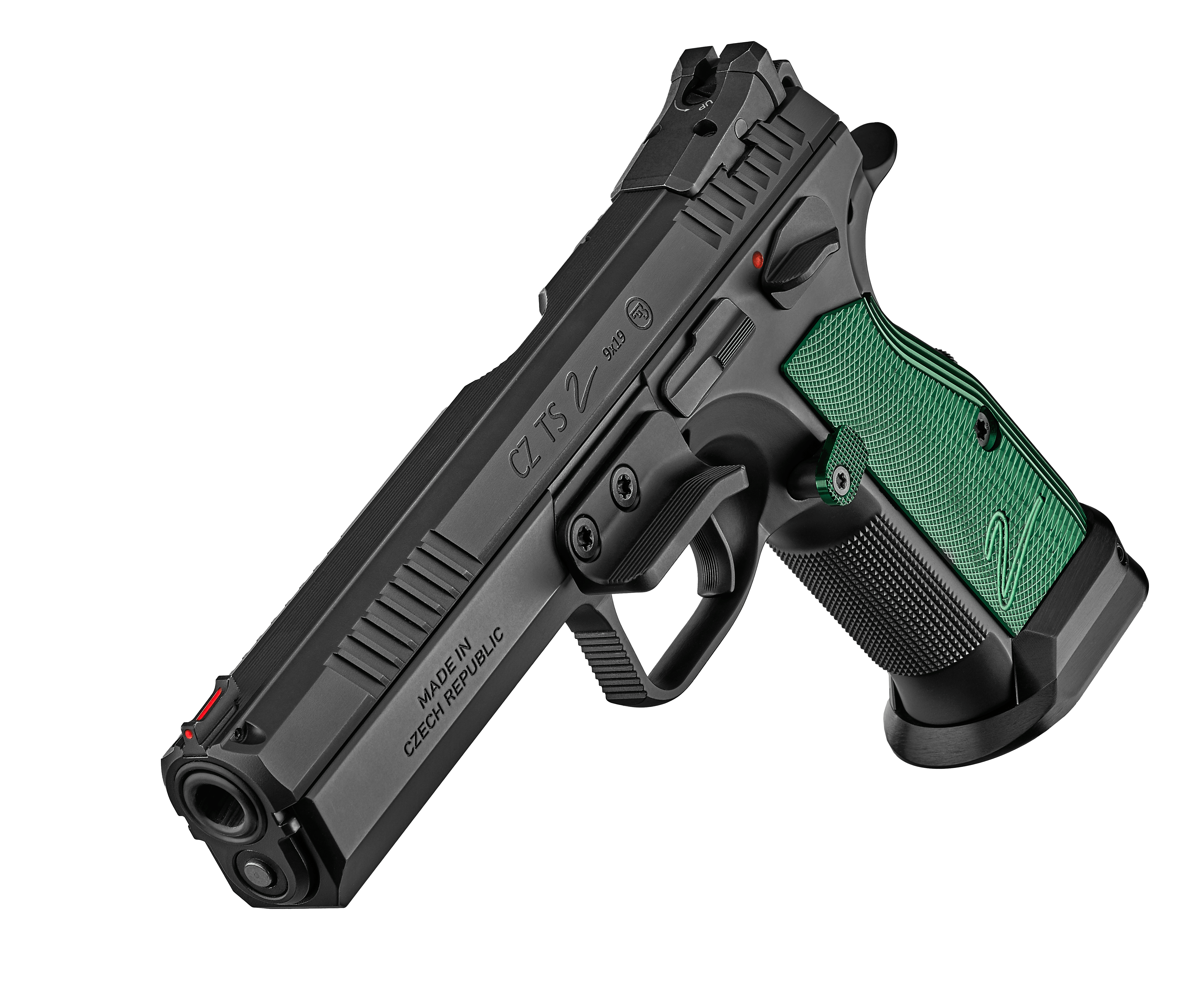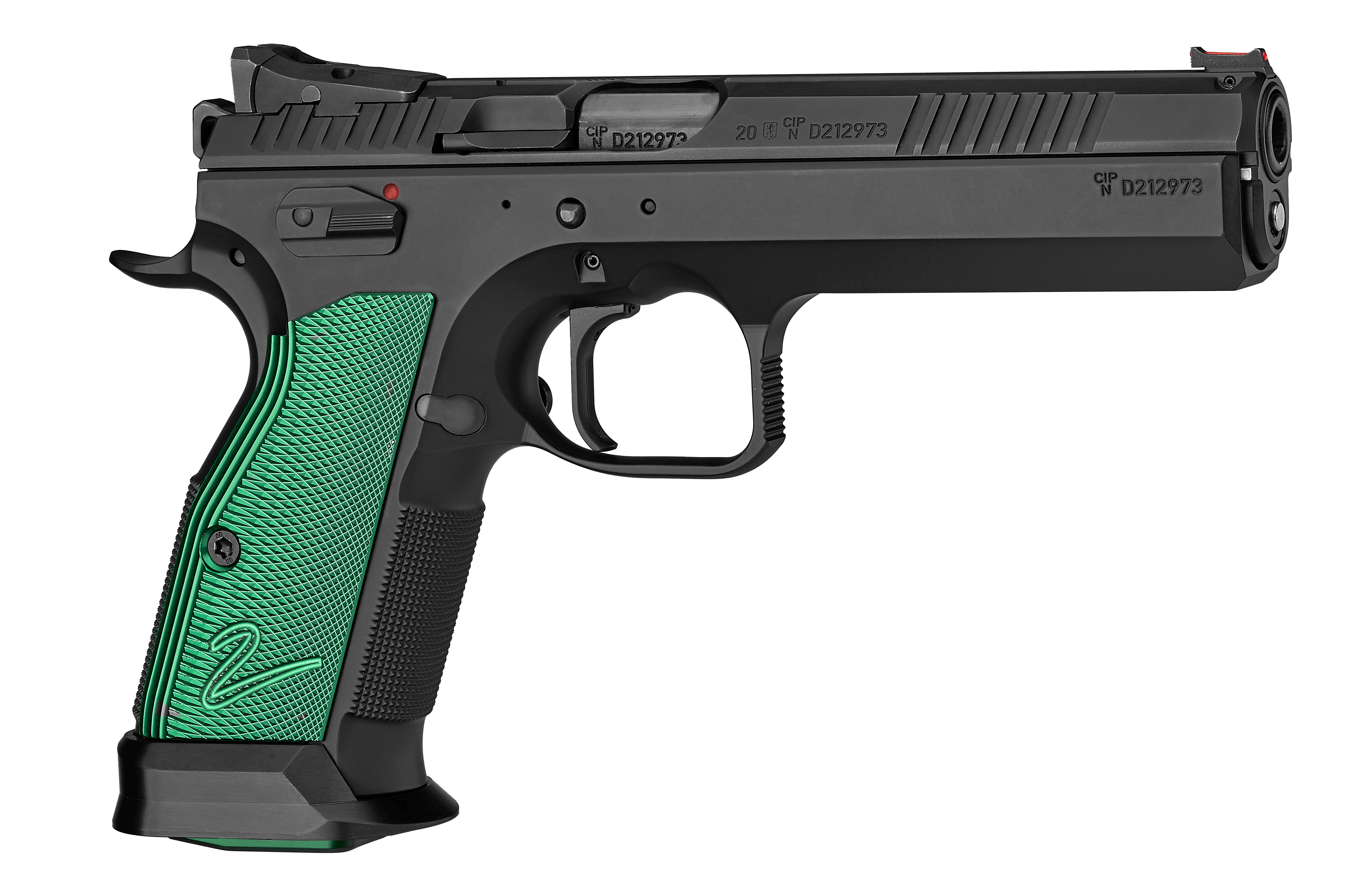 Competition-ready out of the boxA more advanced design of the sport special for the IPSC Standard Division with flat, green anodized duralumin grips and magazines with green anodized base plates. Advanced features include increased user comfort, a height adjustable rear metal sight, a thumb rest, a flat slide stop, and an adjustable, green anodized magazine release button.