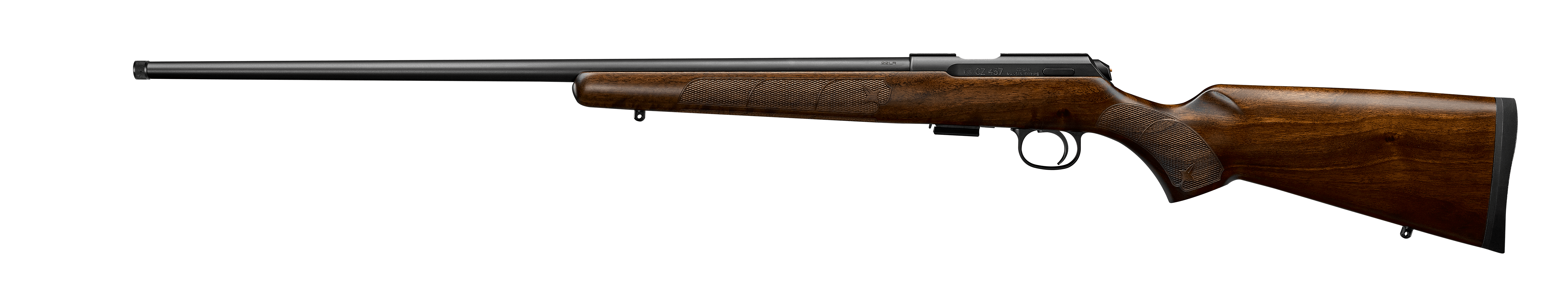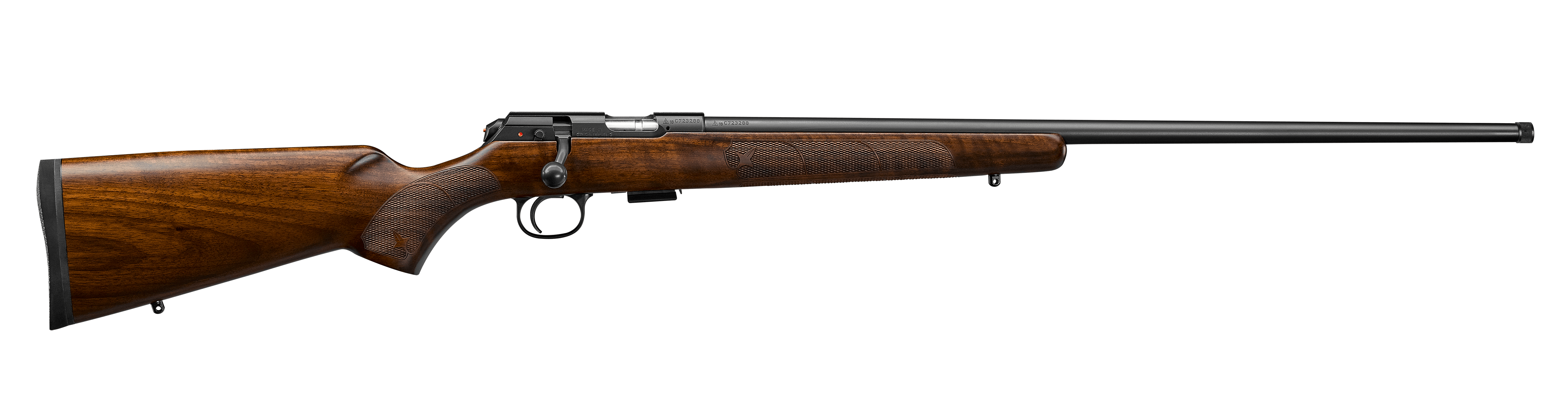 User-swappable barrels and calibersA beautiful, modern example of a classic American sport shooting and hunting rimfire rifle. The varnished American-style stock is made from high quality walnut, with checkering on the grip that incorporates a fleur-de-lis motif. The light profile, cold hammer forged barrel is 630 mm long and has no sights.