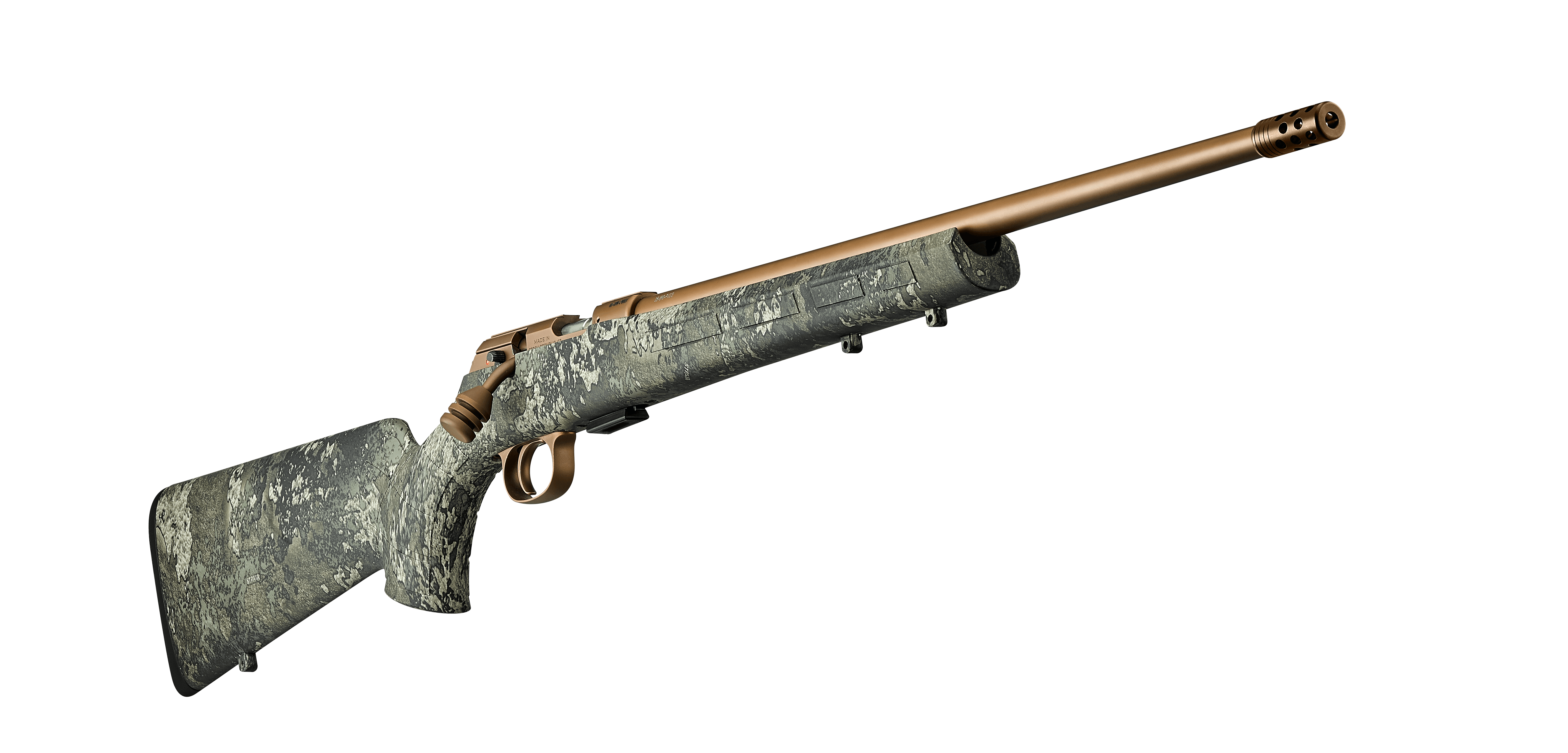 The flat bronze finish on its 20-inch light profile barrel and all metal components, along with a high-quality PVD coating, further contributes to it blending in with natural surroundings and providing extreme resistance to wear and corrosion. Rounding out its feature set is a compensator for reducing muzzle rise.