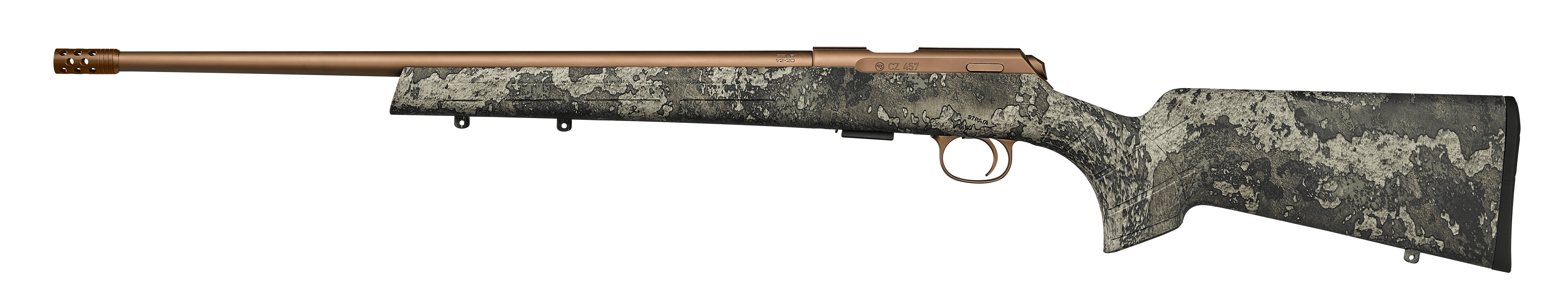 User-swappable barrels and calibersThe new CZ 457 HUNTER STRATA is a new model in the CZ 457 rimfire rifle line. Featuring a highly effective camouflage pattern on its soft-touch polymer stock, you can count on a hidden presence in hand that is extreme durable and resistant to adverse weather conditions.