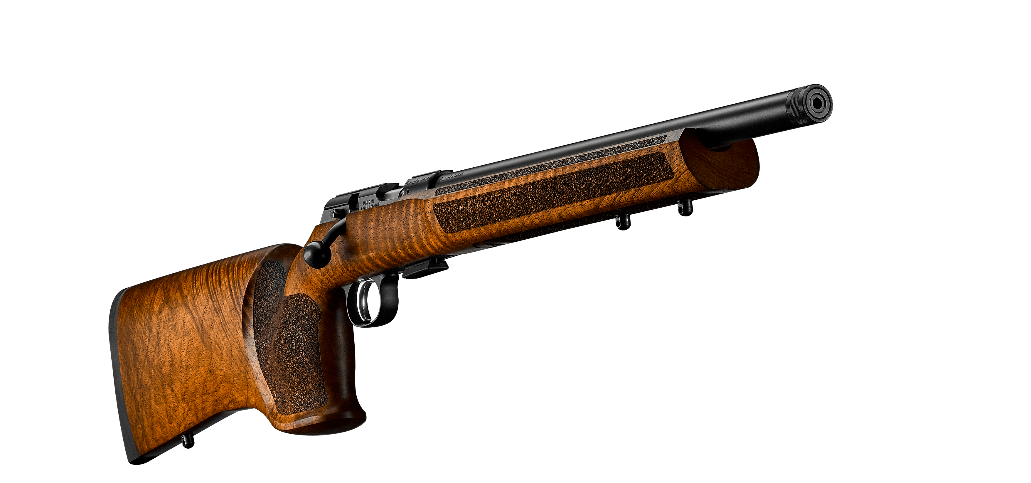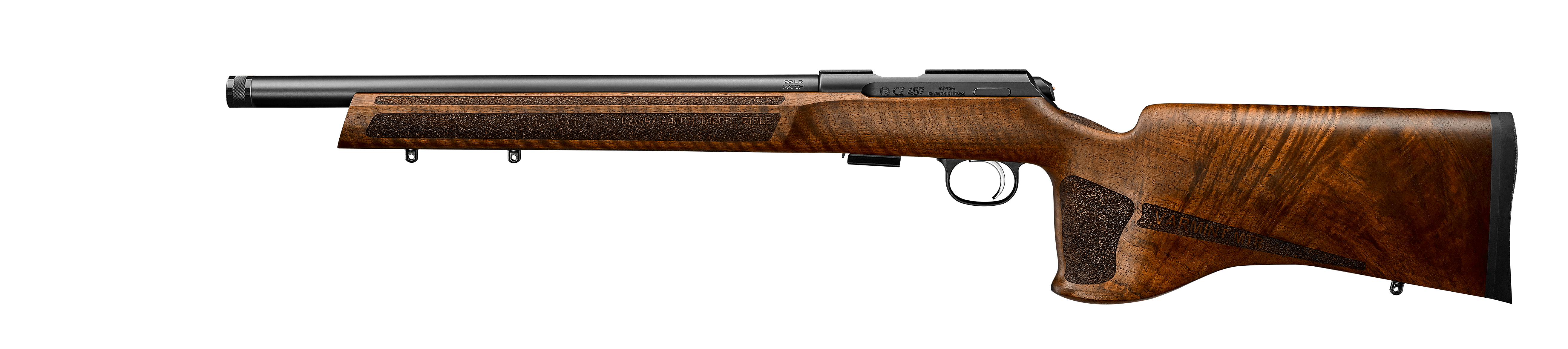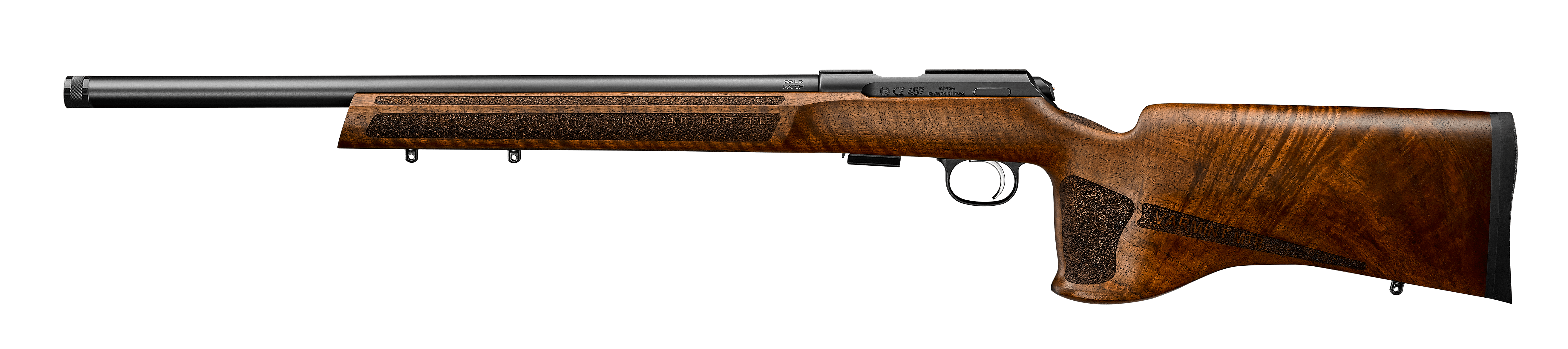 User-swappable barrels and calibersA highly accurate model with an extraordinarily comfortable stock made from premium walnut. The heavy, cold hammer forged match-grade barrel in 22 LR caliber is equipped with a MATCH chamber. Thanks to this feature, together with other innovations in the CZ 457 series, the CZ 457 MTR guarantees 15 mm groups at a distance of 50 m.