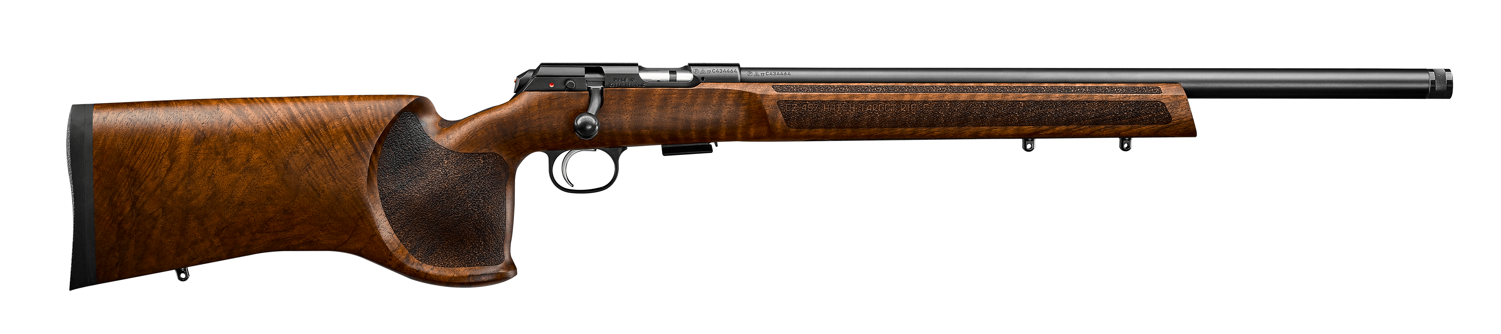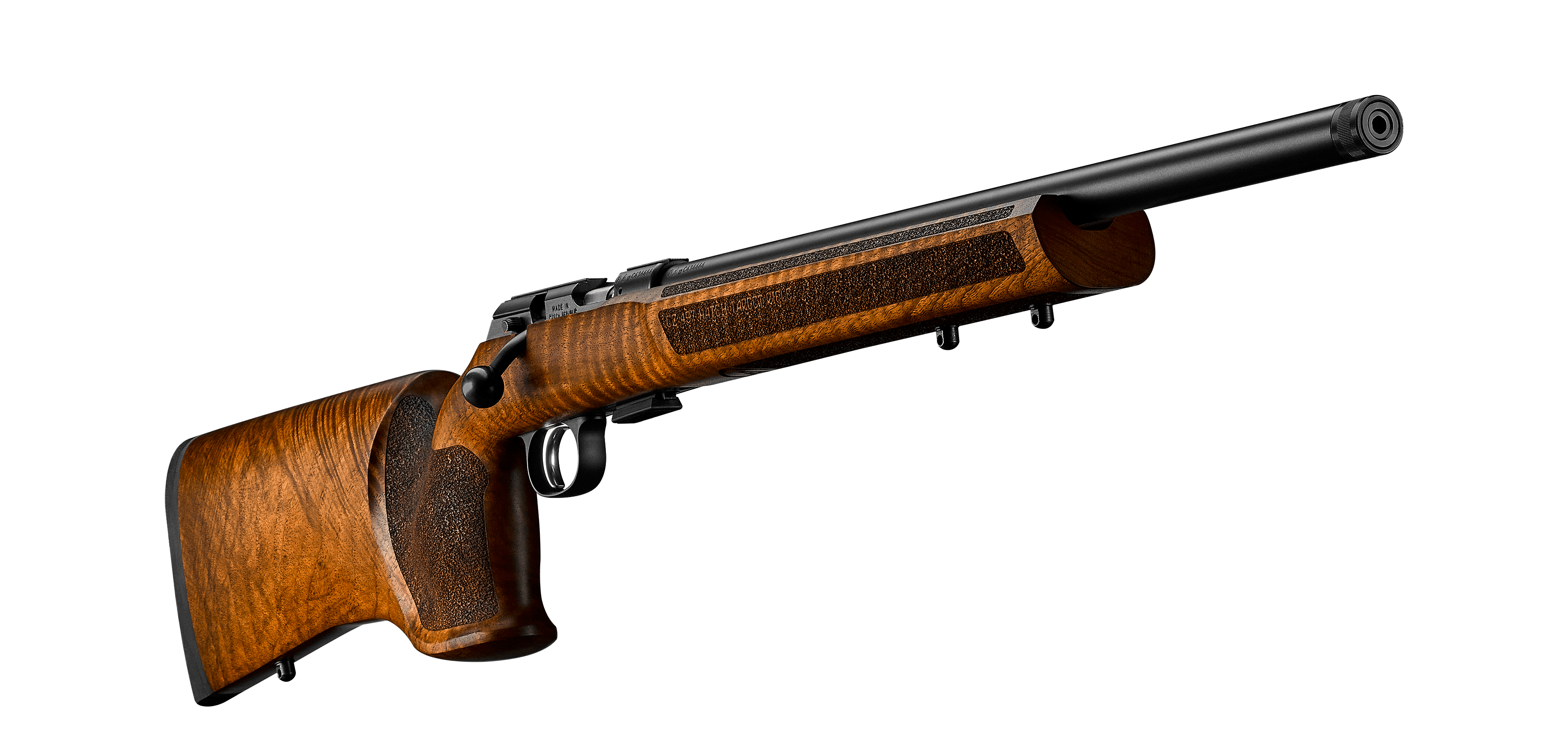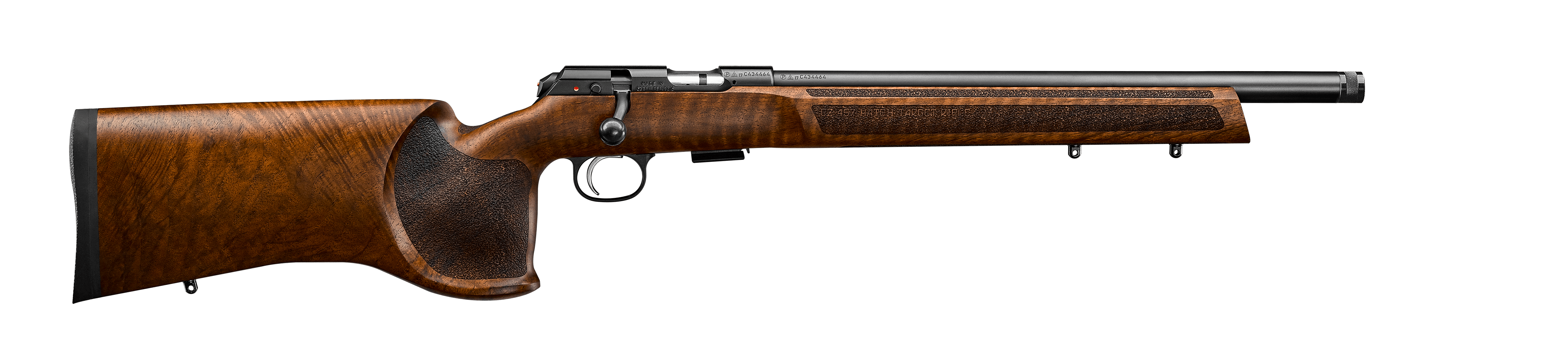 User-swappable barrels and calibersA highly accurate model with an extraordinarily comfortable stock made from premium walnut. The heavy, cold hammer forged match-grade barrel in 22 LR caliber is equipped with a MATCH chamber. Thanks to this feature, together with other innovations in the CZ 457 series, the CZ 457 MTR guarantees 15 mm groups at a distance of 50 m.