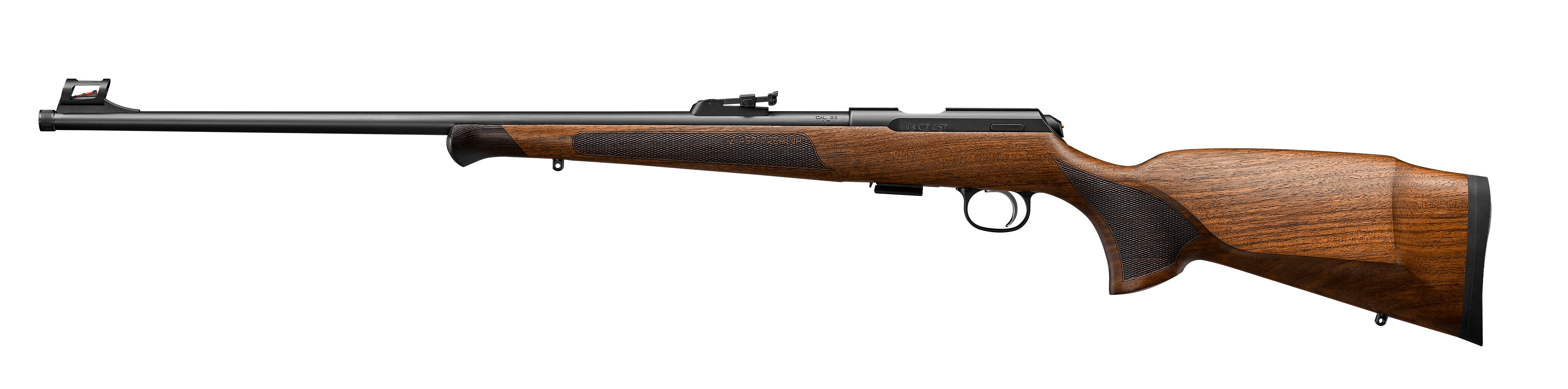 User-swappable barrels and calibersThe CZ 457 PREMIUM is a model that will impress all fans of classically shaped hunting rifles. Its premium walnut stock features a cheekpiece and decorative forend from high-grade material. The 630 mm light profile barrel has a 1/2 × 20 muzzle thread for the attachment of a suppressor. Aiming is quick and intuitive with its tangent rear sight and fiber optic front sight.