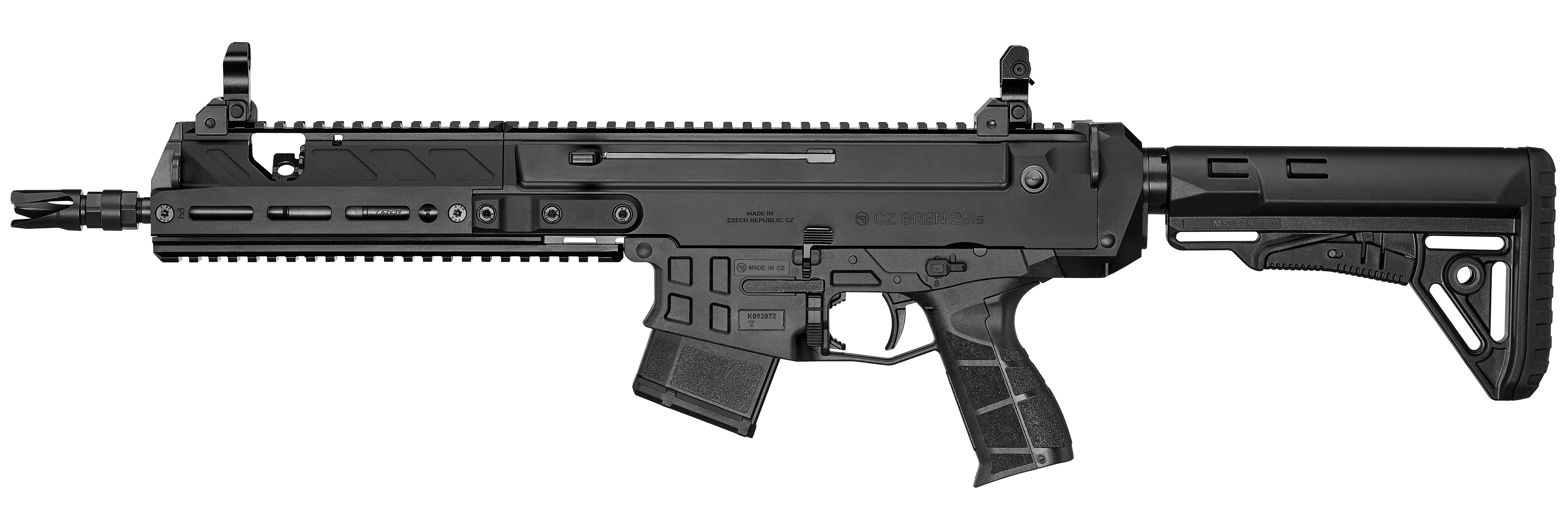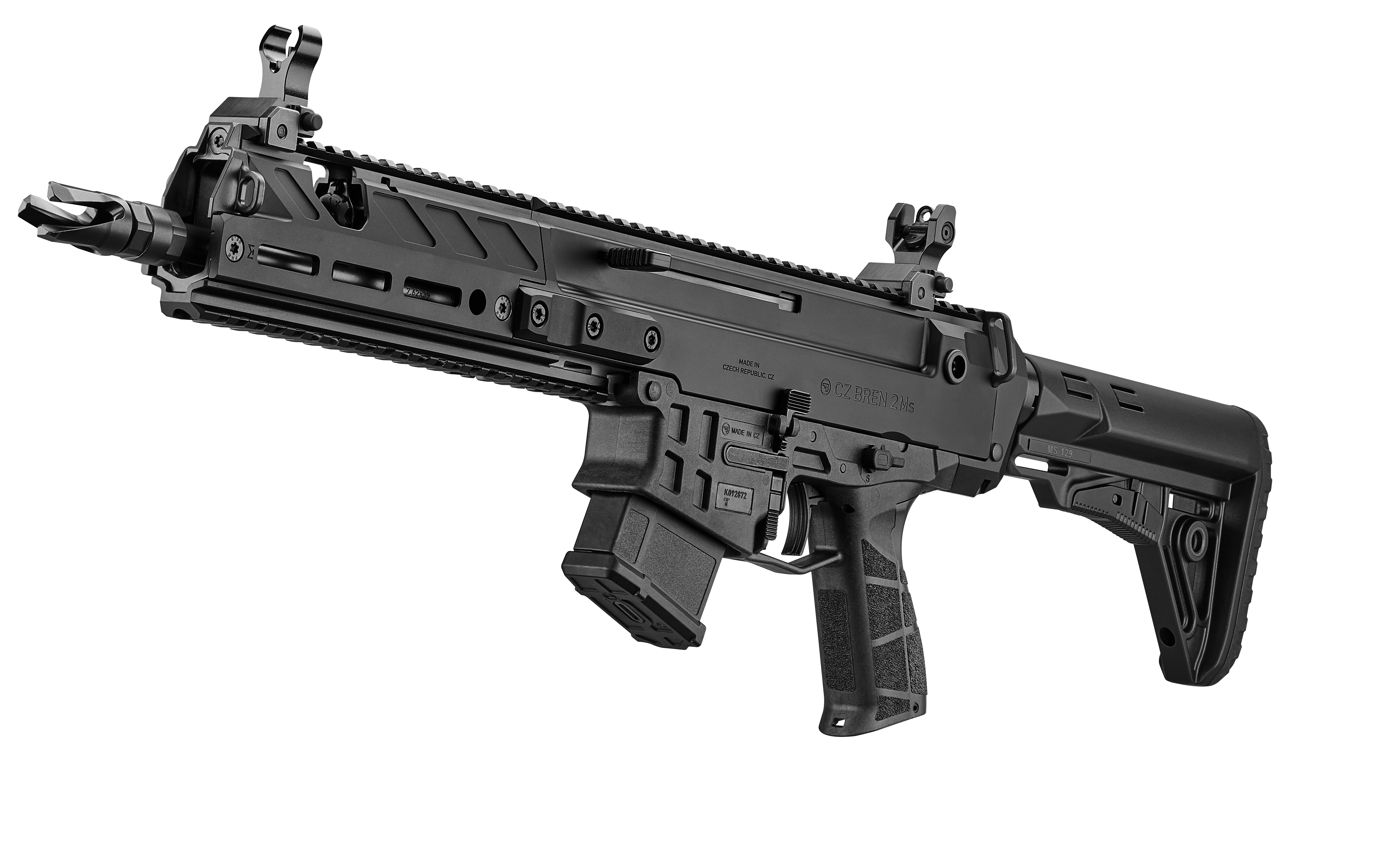 Receiver made from lightweight 7075 aircraft-grade aluminum alloyThis model combines the outstanding design and features of the CZ BREN 2 Ms series with the impressive ballistic performance of the 7,62 × 39 cartridge. Standard equipment includes mechanical sights.