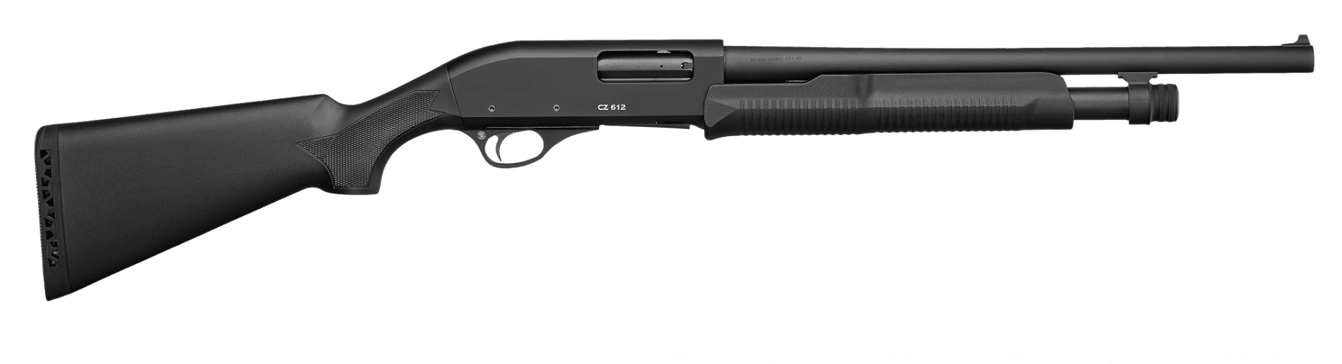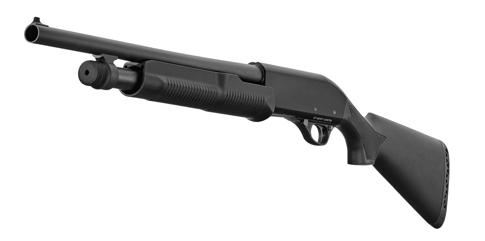Soft rubber recoil padA simple 12-gauge pump action shotgun with a durable polymer stock and reduced length, 47 cm barrel with fixed cylinder choke. The result is a compact, reliable, and powerful firearm that’s especially suited for home defense, while also being a great choice for competing in IPSC disciplines.